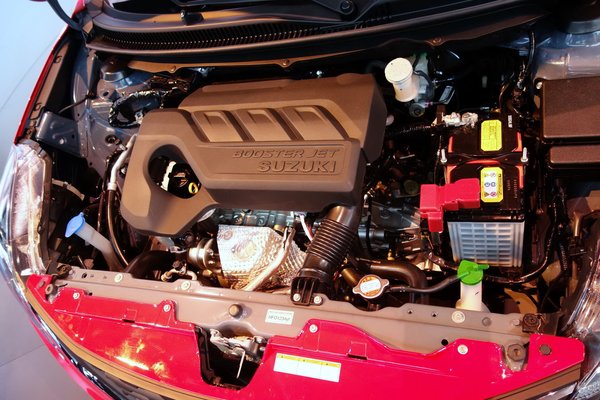 Csakhogy itt és most nem olyan egyszerű eldönteni, melyik a vonzóbb. A kiállított piros Baleno szürke fényezésű, kissé hányavetien elrendezett kábelkötegekkel díszített, néhol eléggé találomra berendezett motorterébe pillantva szinte vágyni kezdünk az esztergomi Swift rendezettebb, modernebbnek ható gépészete után.