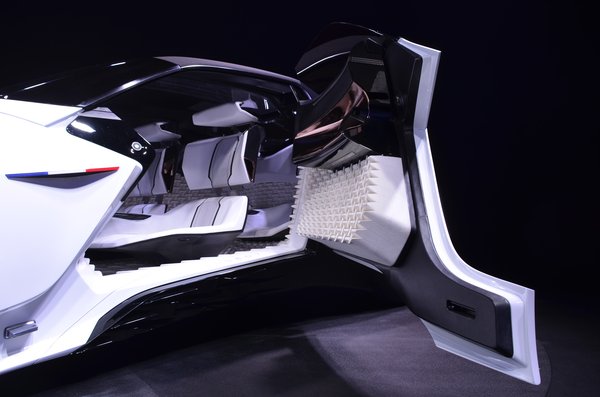 Jól nézzék meg a Fractált, mert annyira újhullámos, hogy az már túlzás. Itt van mindjárt ez a fekete-fehér külső borítása, a méterben mérhető ledes fényjáték minden sarkában. A beltér még durvább, annak bő háromnegyedét 3D nyomtatóval hozták össze. Hogy miféle anyagokkal dolgoztak, nagyrészt talán épp ezért beazonosíthatatlan, de ha ez az autóipar jövője, a karosszérialakatosok és kárpitosok jobb, ha most elkezdik átképezni magukat. Mondjuk 3D nyomtató-kezelővé, efféle megoldás ugyanis szalonról szalonra egyre több gyártónál tűnik fel.