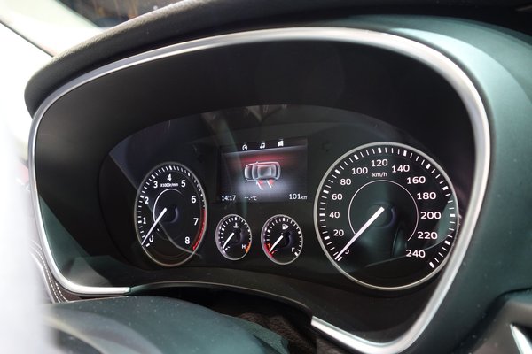 Aztán magamra csuktam az ajtót. Kár volt. Bár nehéz és óriásit döccen, ezt nagyon máshogy teszi, mint a luxuskocsik. Valami irdatlan vastag vaslemez megmoccan odabent a csapódásnál, s ahogy hentereg, csúnyát ránt a hitvány ajtózárakon – nem is olyan az élmény, mint a kínai gagyikon, de nagyon nem olyan, mint amit manapság megszoktunk európai-japán-koreai autóktól. Rettentő gyanús, azt hiszem, ez a jó megfogalmazás. A középkonzol rettenet fautánzata, elálló fedelei sem növelik a bizalmat, a beltéri formák pedig határozottan kétezres évek legeleji stílusban pompáznak. Jaj.