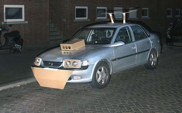 Nem tudni, honnan indult a fura hajnali időtöltés, de látszik, hogy a botcsinálta tuningmester átvette az optikai tuning legjellemzőbb elemeit. Nagy légbeömlők a motorháztetőn, magas légterelők a tető hátsó részén, lámpamaszk kis kerek lyukakkal, a gyárinál jóval nagyobb hűtőrács, és persze az elmaradhatatlan küszöb- és lökhárítótoldatok körbe az autón. A művész üzenete leginkább talán az unalom elleni harc lehet – hisz elsősorban régebbi, unalmas átlagautókra kerül a díszítés – de mintegy mellesleg találóan figurázza ki az ízléstelen katalógus-tuningot, amely régóta hódít kiirthatatlanul világszerte.