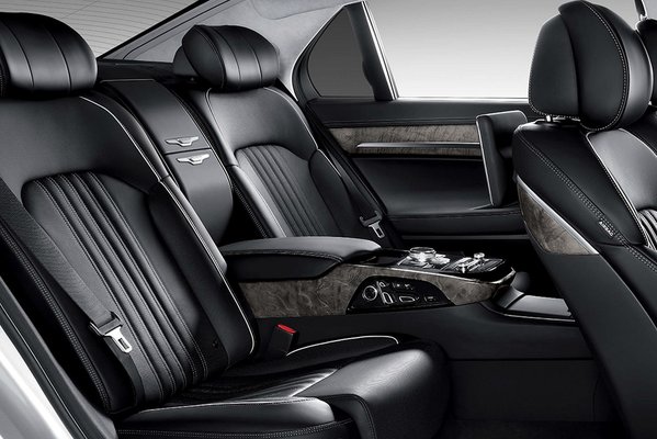 A G90 igazi óriás: 5,205 méter hosszú, 1,915 méter széles, 1,495 méter magas, a tengelytávja pedig 3,16 méter, azaz méretben közelebb áll a német luxusautók nyújtott változataihoz, mint a rövidebbekhez. Ez érthető is: a távol-keleten sokkal többen használják sofőrrel az efféle autókat, mint Európában vagy Észak-Amerikában, a Genesis egyik legfontosabb célpontja is Kína lehet, ahol viszont egyértelműen a legtágasabb limókat keresik a vevők. Ehhez képest a 484 literes csomagtér meglepően kicsinek tűnik, de a célnak alighanem bőséggel megfelel majd: aki ekkora autóval jár, az valószínűleg amúgy sem sok csomaggal megy nyaralni, hanem hitelkártyával.