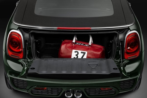 A JCW Convertible az alap kabrióhoz képest új első lökhárítót és nagyobb légbeömlőt is kapott. Kívülről továbbá a ledes fényszórót, a külön ehhez a modellhez készített 17 colos felniket és sportkipufogót szúrhatjuk ki. A motorosan működtethető vászontető nyitása-zárása csupán 18 másodpercet vesz igénybe, és 30 km/h-s sebességig üzemeltethető. A beltérben sportülések, bőr sportkormány, és az alapkivitelhez képest átfaragott műszeregység fogadja.