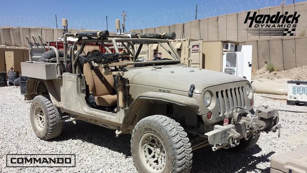 A Hendrick Dynamics, amely az azonos nevű NASCAR versenycsapat egyik melléküzemága, az aktuális Wrangler alapjaira készített katonai változatokat, amelyekkel pályáznak is az Egyesült Államok hadseregének egyik járműbeszerzési programjára. A COTS lényege, hogy teljes egészében sorozatgyártásból származó alkatrészekre épül, és a Hendricks Commando meg is felel ennek a feltételnek. A Jeep Wrangler alapvető felépítése még mindig egy igazi munkaterepjáróé – elöl és hátul is masszív merev tengelyeket használnak a futóműben – így a Hendricksnek nem kellett sokat tennie. A 2,8 literes négyhengeres VM Motori dízelmotort úgy hangolták, hogy sokféle nehezebb kőolajszármazékkal működjön, beleértve a JP-8 jelzésű szabvány katonai kerozint.