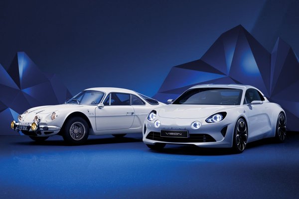 A nagy bejelentés kapcsán mutattak egy autót is, bár az Alpine Vision nem több, mint a tavalyi Celebration tanulmány egy újabb változata, színes versenyfestés helyett hófehér fényezéssel és egyszerűbb részletmegoldásokkal. A típusról csak annyit tudni, hogy viszonylag könnyű lesz és középmotoros, szemben az 1995-ig gyártott Alpine-okkal, amelyek a hátsó tengely mögött hordták a motorjukat. A formatervet láthatóan igyekeztek úgy alakítani, hogy hordozzon valamit a leghíresebb Alpine, az A110-es karakteréből. A gyáriak természetesen azt mondják, igazi élményautó lesz az első széria Alpine, de a gyártásra érett modell még messze van: az év végére ígérik a premiert, és a jövő év közepére az első szériapéldányokat.