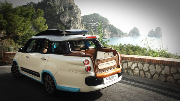 Az 500L-hez toldott 54 centis farrész képtelenül aránytalan autót eredényez. Látszik, hogy igyekeztek valamelyest az eredeti formához igazítani az autó meghosszabbított hátsó felét, de a végeredmény talán épp attól ilyen démoni, hogy nem tűnik valamiféle házi barkácsolás eredményének. A cél nyilván az volt, hogy hasonlóan tágas autót kínálhassanak a Caprin dolgozó taxisoknak, mint amilyenek a mostanság szolgáló Mareák, de valószínű, hogy az 500L konstrukciója még annyira sem alkalmas kabriónak, mint a régebbi Fiat szedánok. Ezért csak a tető közepét vágták ki, a tetőkeret a helyén maradt, helyette hátul nyitott az autó.