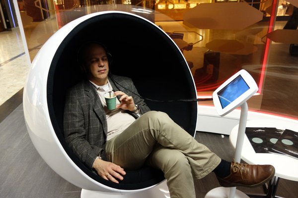 Minden ott volt, ami ilyen helyeken kötelező: Nespresso kávéspult inassal, buborékfotelek zajkioltós Sony fejhallgatókkal amikből meditációs szeánsz szólt, nyakmasszázs-szeglettel. Kicsit kezdem érteni - de vajon hozzájutok-e egy ugyanilyen Vignale-ponthoz az Örs vezér téri Árkádban is, ha veszek egy ilyen autót?