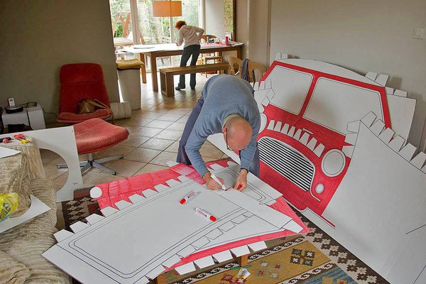 Megépítették ugyanis az 1959-es Mini Morris Minor replikáját kartondobozból – törekedtek a teljesen pontos mérethűségre. A munkát valamelyest nehezítette, hogy egy 2010-es Countryman belsejébe pászították be a közel hatvanesztendős elődöt.