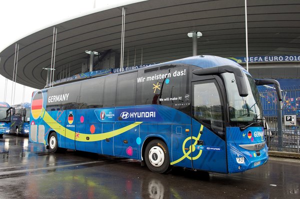 Érdekesség a többször is említett buszbeszerző, azaz a főtámogató, aki nem más, mint a dél-koreai Hyundai. Ugyanis kézenfekvő lenne, hogy a világ egyik legnagyobb buszgyártójaként (több mint 17 000 buszt gyártanak évente) ez a cég hozza a foci Eb buszait Franciaországba. Azonban van egy prózai oka annak, hogy nem koreai busszal utazhatnak a focisták: nincs az EU piacaira szánt autóbusza Hyundai-nak. Így a koreaiaknak be kell érniük az itt elérhető busztípusokkal. Persze a Hyundainak így sincs oka a szomorkodásra, hiszen több száz más járművet: személyautókat, furgonokat, terepjárókat és kisbuszokat szállított a franciáknak az Európa-bajnokság zökkenőmentes lebonyolításához.
