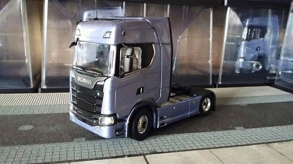 A tervezők alapvetően ragaszkodtak a korábbi karakteres Scania stílusjegyekhez, így a hatalmas, vízszintes osztású hűtőrácshoz az alsó sarkaiban a két fényszóróval, de jól láthatók az eltérések, például a fülke szögletesebb hatású első élei, az oldalablakok mögötti betét ötszög-formája, és a Daf-okéhoz hasonló felső lámpák a fülke felső sarkai közelében. Azt persze még nem tudni pontosan, hogy az új Scania S milyen célszerű fejlesztéseket kínál. Az is csak sejthető, hogy miféle motorokat kínálnak majd, bár a makett talpán olvasható szöveg alapján a kínálat csúcsán marad a 730 lóerős, 16,4 literes V8-as, amellyel a piac második legerősebb vontatója marad az új Scania (Az első a Volvo FH16 750 lóerővel; nem mintha az a húsz lóerő bármit számítana).