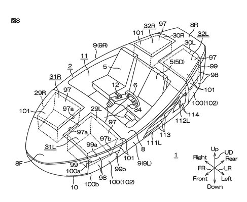 A Yamaha megoldásának különlegessége, hogy a futóművet a kerekekkel együtt behúzza a hajótest elejében és hátuljában kialakított rekeszekbe, így a vízbe érve kompromisszummentes hajóformát ölthet. Így gyorsabb, takarékosabb és könnyebben irányítható lehet a kis kétüléses a vízben, mint a legtöbb hasonló kétéltű. Cserébe a belső térfogat nagy részét elveszik ezek a rekeszek, így nem igazán látszik, hogy a hajtásnak vagy a csomagoknak hol marad hely. A járműnek egyébként kifejezetten érdekes a hajtása a vízben: valamiféle vízsugár-hajtást alakítanának ki a csónaktest két oldalán.