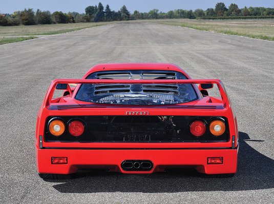 Az F40-eseket 1987-ben kezdték gyártani, Enzo Ferrari pedig 1988 augusztusában hunyt el. Ez a konkrét autó 1992-es évjáratú, egy svájci vásárlónak szállították le annak idején. Több tulajdonosváltás után is csupán 26800 kilométert mutat az órája. Az F40-nél már törekedtek a szénszálas műanyagok használatára – ennek köszönhetően 1089 kilogrammot nyom, miközben háromliteres V8-asa 478 lóerőt és 577 newtonmétert ad le.