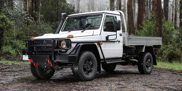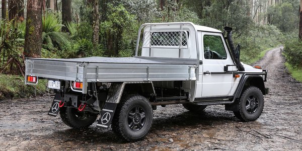 Ausztráliában például épp most mutatkozott be a G300 CDI Pickup, amely a G osztály katonai változatán alapul. Ez a gép legfeljebb kívülről emlékeztet a Mercedes luxus-terepjárójára, belül viszont a legegyszerűbb, szinte slaggal mosható anyagokat találjuk, és a futómű hangolása is jobban megfelel a nehéz terepen való előrejutás követelményeinek, mint az aszfalton való használatnak. A 38 fokos első és 35 fokos hátsó terepszögű jármű 63.5 centiméter mélységű vízen képes átgázolni, 2085 kilogrammal terhelhető – bár ebben már a plató súlya is benne van – valamint 2120 kilogrammos utánfutót vontathat. A csomag része az autó tetejéig kivezetett szívócsonk, a 16 hüvelykes alufelnikre szerelt 265/75-ös terepgumik és a kengururács is.