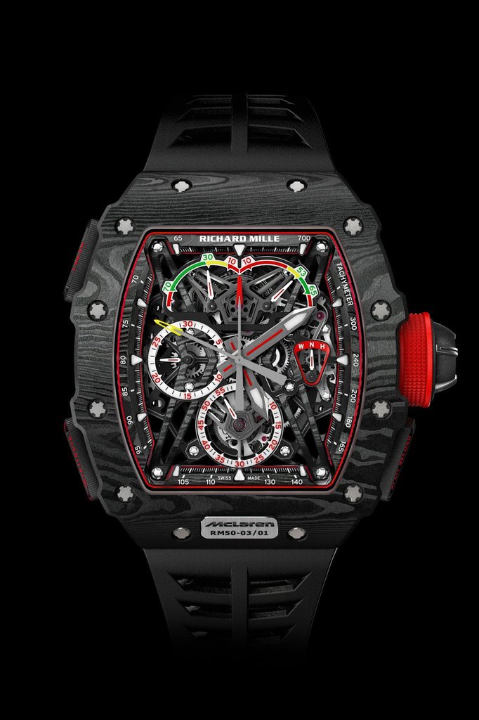 A brit sportkocsigyártó nemrég szakított régi partnerével, a TAG-gal, amely egyebek közt az óra-üzlet egyik komoly neve is, de nem maradt sokáig partner nélkül. A Richard Mille nevű, méregdrága mesterműveiről ismert óragyártó szegődött a McLaren mellé, és mutatott be egy karórát a sportkocsigyártó nevével. A szerkezet teljes neve RM50-03 Tourbillon Split Second Cronograph, és ha egyáltalán értelmes az efféle képzavar, valóban az órák McLarenje. Forgó szerkezetű tourbillon-mechanika teszi még pontosabbá, amely percenként megforgatja az egész óraszerkezetet, és vagy 70 órát működik húzás nélkül.
