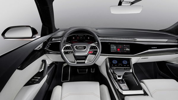 A Genfi Autószalonon leleplezett Q8 Sport Concept részleteiben eltér Amerikában bemutatott testvérétől, de a karaktere és az arányai semmit sem változtak. Ugyanaz a csapott hátú tégla, amely épp csak egy leheletnyivel tűnik kevésbé nehézsúlyúnak a Q7-esnél, de annál még sokkal agresszívabb. Profilból a narancssárga festés a legfeltűnőbb eltérés, de a Sport másik hűtőmaszkot visel: itt nem rácsozták be vastag fémszínű rudakkal a hűtőrostélyt, és a formáján is finomítottak. Hátul a lökhárítót tervezték át, viszont itt is változatlan a lámpák közüli rész. Összességében azért ez sem tűnik kevésbé világeltaposó járműnek, mint a kék előd, és amennyire tudni lehet, 2018-ra elkészülnek a szériagyártmánnyal is, amely a Q7 sportos alternatívája lesz.