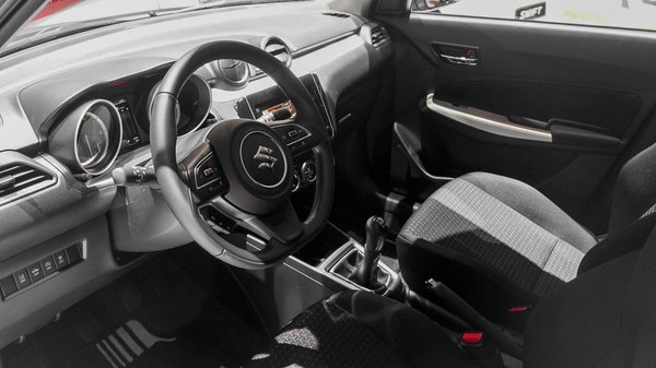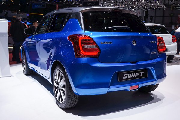 Az új, hatszögletű - kicsit fordos - maszk és az új első lámpatestek sportosságot kölcsönöznek a Swiftnek, erre pedig az egyik kiállított autón versenycsíkokkal és kockás zászlóval próbálnak rátenni még egy lapáttal. A hátsó ajtók kilincsét az oldalablak mellé rejtették, amolyan olaszos ötlettől vezérelve. Hátul a legszembetűnőbb, hogy a csomagtérajtón húzódó ív a karosszéria síkjából kiemelkedő hátsó lámpákban is folytatódik.