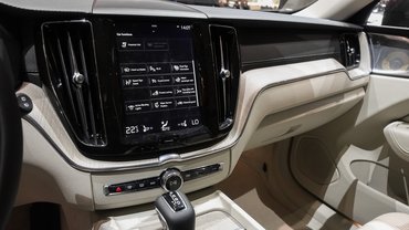 Ugyanaz az információs-szórakoztató rendszer lakik a középkonzolon, a függőleges, tabletszerű, ujjal húzogatható menüs dolog, mint a többi új Volvóban, és mielőtt a képek láttán fogni kezdené valaki a fejét, hogy ebben már nem lesz csiszolt üvegkristályos, Orrefors-váltógomb – ezt az extrát is megkapja, aki csenget.