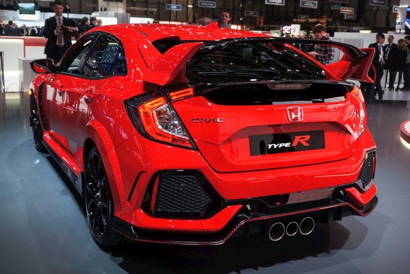 Az új Type-R egészen durva jelenség. Nem mondhatjuk, hogy ezt a stílust most kezdte a Honda, mert már a kifutó generációra is akkora szárnyat szereltek, amit egy-egy csóróbb versenysorozat pályagépei is megirigyelnének. Itt az összhatás valahogy mégis dögösebb. Az első lökhárító két szélére tagolt légbeömlők kerültek, maga a lökös elöl-hátul kapott egy szénszálas toldatot is, az alap-Civic középen kivezetett dupla kipufogójából pedig itt már tripla lett. A szélesebb futóművet a sárvédőívek is követik.