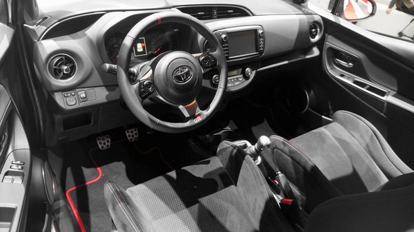 A GRMN Yarist a csúcsosabb orr, az átfaragott első-hátsó lökhárító és a középre kivezetett, trapéz kipufogóvég különbözteti meg mezei társaitól - már ami a külsőségeket illeti. Belül fémpedálok, sportosabb kormány és egy igen jó oldaltartású sportülés fogadja a sofőrt, de a Gazoo Racing logója is több helyen (kormányon, üléseken) visszaköszön. Ez persze csak a körítés, nem ettől lesz igazi vadóc a Yaris GRMN.