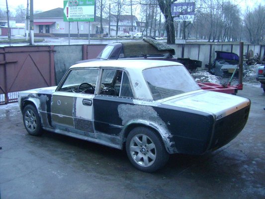 Nagyjából két éve dolgoznak Ukrajnában ezen a csodán, egy 2101-es Zsiguli és egy E46-os BMW kupé sajátos keverékén. Az építés képei láttán hihetetlen, hogy a Lada tető, a 3-as BMW padlólemez és az ezer darabból összehegesztett karosszéria kiadhatja, de a végeredmény kifejezetten igényes munkának tűnik. Alaposabban megnézve persze feltűnik, hogy nem inden vonal fut tökéletesen – az első és a hátsó oldalablakok kerete például – de messzebbről zavarba ejtően egységes a kép. Arról nincs információnk, hogy a 2,8 literes hathengeres motorral mit tud az autó, de a maga 193 lóerejével biztosan sokkal fickósabbnak tűnik, mint az eredeti ezerkettes.
