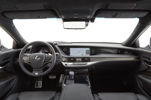 Sportváltozat létére a csúcs-LS-t nem díszítették ízléstelenül túl, az F Sport feliratokon kívül csak a fekete első légbeömlők és hűtőrács, néhány díszbetét és a 20 hüvelykes, kifejezetten ennek a modellnek tervezett felnigarnitúra jelzi az autó identitását. A nagyobb kerekekre egyébként nem csak szépészeti szempontból van szükség: az F Sport hatékonyabb fékrendszerének is kell a hely.