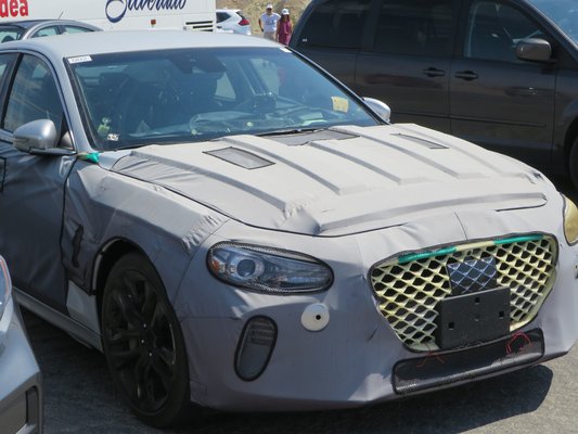 Olvasónk itt készítette a két képet, amelyeken valószínűleg a Genesis G70 egyik prototípusa látható. A hátsókerék-hajtású, középkategóriás szedán állítólag már csak napokra van a bemutatótól, és a Hyundai nemrég megalapított luxusmárkájának talán legfontosabb modellje lesz, hisz az Audi A4/A5, a BMW 3-as és 4-es sorozat, illetve a Mercedes C osztály közvetlen ellenfelének szánják. Hagyományosan ez a szegmens adja a prémium-gyártók eladásainak legnagyobb részét, így a Genesis számára különösen fontos, hogy a G70 jól sikerüljön.