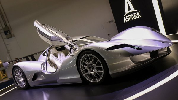 Az utolsó sajtónap zárása előtt néhány perccel, teljesen véletlenül valami furcsaságba botlottam. Egy nagyon lapos, de igazán szép vonalvezetésű hipersportautó-prototípus volt az emelvényen, mögötte pedig villámok záporoztak a vásznon. Fogalmam nem volt, mi ez, sőt akkor sem lett ismerősebb, amikor elolvastam a gyártó nevét: Aspark. Pedig lehet, hogy érdemes megjegyezni őket.