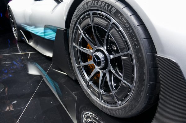 A V6-os turbómotor és a szekvenciális váltó között még egy villanymotor is dolgozik, meg az első tengelyen még kettő. A rendszerteljesítmény félelmetes 1000 lóerő, a három villanymotorból kiindulva valószínűleg a világ összes newtonméterével. Hamilton gurult be vele a színpadra, bele is túrt a gázba, jó szárazon hörög, hallani, hogy nem olyanra akarták csinálni a hangot, mint egy versenyautóban, hanem konkrétan az.
