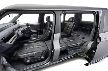 Szóval itt a világ legrosszabb arányú dobozautója, terepgumikon és 20 hüvelykes felniken, béna lámpákkal, alacsony ablaksávval, és valószínűleg a világ legjobban variálható belső terével. Nem tudom, hogy Japánban van-e Ikea áruház, de ha igen, valamelyik tervező biztosan oda járt ötleteket gyűjteni. A hasábforma karosszériában ugyanis jól használható hasábforma az üreg, és minden ülés szépen síkba fektethető. Ráadásul ott a tolóajtó, és a tetőbe húzott hátsó ajtó, amitől szenzációs lehet pakolni bele, legalábbis én úgy képzelem.