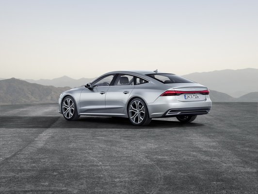 Pedig ez nem valami spórolásból elkövetett modellfrissítés. Újak a műszaki alapok, az A8-asból már ismert, vegyes építésű MLB Evo padlólemezre váltottak itt is. Alaposabban megnézve a képeket már egyértelmű, hogy egy közös lemezdarabka nem maradat. Az új A7 tetővonala laposabb ívű, az ablak sziluettje kecsesebb, a túlnyúlásai rövidebbek. Ez egy másik autó, de ezt első pillantásra inkább csak érezni lehet mint biztosan tudni. Az orr-rész persze markánsan új, de csak azért, mert ez az egységes hatszög-hűtőmaszk lényegében kötelező eleme minden új Audinak. A legmarkánsabban az autó hátulján látszik a változtatás szándéka: az egymással középen összekötött, befele keskenyedő hátsó lámpákhoz hasonlót eddig nemigen láttunk az Audi kínálatban – inkább a Lexus IS jut róluk az ember eszébe. Az összhatás mindezzel együtt még mindig a legerőteljesebb az Audik között: az új A7 is igazán látványos darab, sokkal inkább, mint akár az A6-os, akár az A8-as.