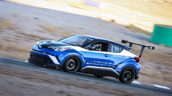 Eredetileg csak a SEMA Show-ra szánták a C-HR versenyfestésű változatát, amely műszakilag sem hasonlít túl sokban a szériaváltozatra, ám ha már ott volt, kipróbálták, mit is tud.