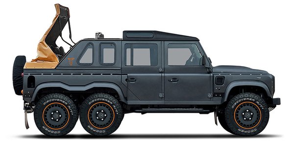 A Land Rover Denefender hatkerekű változatát, a Flying Huntsmant már kínálják egy ideje. A Corvette motoros átépítéshez nyilván betáraztak alkatrészből, mert a Defender gyártásának leállítását követően is kínálják a típust, sőt, ezúttal bővül is a kínálat. Állítólag jön a Soft Top változat, amely véletlenül ugyanúgy hátul vászontetős, ahogy a G650 Landaulet volt. A múltidő indokolt, hisz az AMG már mind a 99 példányt eladta, így a Kahn Design döntéshozói nyilván meglátták a lehetőséget: akinek a Mercedesből nem jutott, tőlük vehet hatkerekű, nyitható tetejű terepjárót. Ebbe is kérhető lesz a 430 lovas, 6,2 literes Corvette V8-as, de akinek csak a látvány kell, az megkaphatja az autóját szimpla Land Rover turbódízel motorral is. Az AMG G osztály 650 lóerejével egyik sem versenyezhet, viszont a hatkerék-hajtás presztízsét – ha ugyan tényleg van neki – mindenképp megkaphatjuk a Kahn-tól.