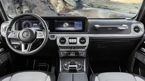 A legtöbb változtatás egyébként szinkronban van a Mercedes belsőtér-egységesítési törekvéseivel: itt is az S osztályéhoz hasonló dupla képernyős megoldást alkalmaznak, amely a hagyományos műszereket is kiváltja. Az egész műszerfal formája is lágyabb lett, bár kevésbé ívelt felületekből áll, mint a többi Mercedes esetében – láthatóan igyekeztek valamit megtartani a G osztály szögletes karakteréből a belső térben is.