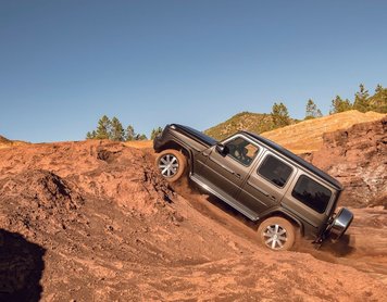Hiába a nagy puritántanalítás odabent, az elöl független, hátul merevtengelyes új G a Mercedes szerint épp annyira terepjáró, mint elődje volt. A tengelyek közti hasmagassága amúgy 24,1 centiméterre nőtt, és minden vadász örömére a gázlómélység kerek tíz centivel került feljebb: már 70 centis a gyár által megadott maximális határ. A maximális oldaldőlés szöge hat fokkal javult, már 35 fokos, míg az első terepszög 30, a hátsó 31 fokos az új generáción.