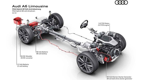 Ami a technikát illeti, az új A6-os már kizárólag mild-hibrid rendszerekkel lesz kapható, a négyhengeresekben tizenkét voltos, a hathengeresekben negyvennyolc voltos elektromos rendszer lesz. A belépőszintet a kétliteres TDI jelenti 204 lóerővel és 400 newtonméterrel, ezt 40 TDI-vel jelölik az Audi új rendszere szerint. Eggyel fölötte a 45 TDI van, háromliteres, V6-os dízellel, 231 lóerővel és 500 newtonméterrel. A dízelmotoros A6-osok közt az 50 TDI lesz a csúcs, amelynek háromliteres V6-osa 286 lóerőnyi teljesítményt és 620 newtonméteres csúcsnyomatékot tud leadni. A bevezetéskor egyetlen benzinessel lesz kapható az autó: a 3.0 TFSI 340 lóerejéhez 500 newtonméteres csúcsnyomaték társul.