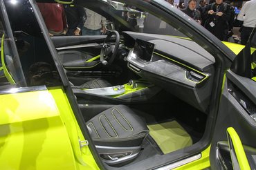 Befotózni azért lehetett, így nem titok már előttünk a Vision X belseje sem. A szürke-zöld színkombináció hatásos, a zöld cérnával varrott szövetek pedig kicsit emlékeztetnek az egykori farmeros kárpitokra, legalábbis stílusukban. A fényes betéteket ugyanakkor szerintem egy kicsit túltolták, a középső kijelzőt körülölelő betét kimondottan stricis. Ezen nyilván finomítanak még, aligha a Škoda lesz az, aki egy kis crossovernél ilyet sorozatgyártásba tol.