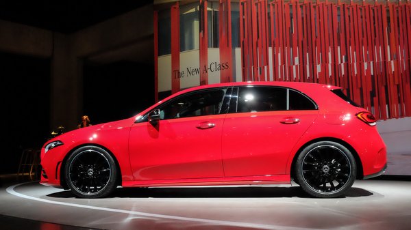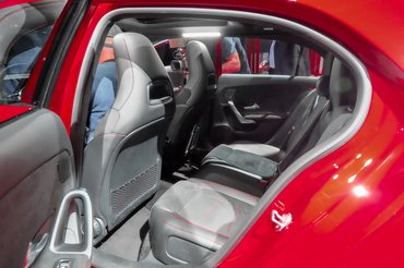 Lépjünk inkább az A osztályra, ami a 2018-as szalon legfontosabb Mercedese. Hogy a réginél sokat kritizált szűk hátsó ülésen és rosszul használható csomagtartón javítsanak, ez a teljesen új változat hosszabb, hátul kicsit bucibb formájú a réginél. Nem tett neki rosszat az átalakítás, még kinézetileg sem. 4,41 méterre nőtt a teljes hossz, ami már feszegeti a kompakt családi ferdehátú kategória határait, de tény, hogy ebben az autóban én a 187 centimmel már elöl és hátul is tökéletesen elférek, a fenekemen, hátamon és könyökömön kívül csak akkor ér egyéb testrészem a beltér elemeihez, ha szándékosan kitekeredve ülök.