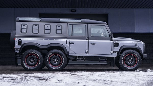 A brutális jármű 5,1 méteres, 880 milliméterrel és plusz egy hajtott tengellyel hosszabb, mint az átépítés alapját adó 110-es Defender. Egy kisebb létszámú osztályt vagy egy kosárlabda-csapatot cserejátékosokkal simán el tud szállítani a Flying Huntsman 6x6 Civillian Carrier névre keresztelt monstrum, hiszen kilencszemélyes.