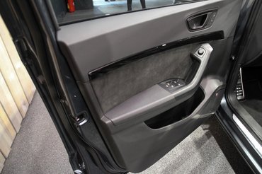 Odabent igényesebb lett az anyaghasználat, az ajtópanelekre került némi alcantara, és az ülések is alcantarák, mellesleg egész jó az oldaltartásuk is - már amennyire ezt állóhelyben meg lehet állapítani. A bőrkormányt perforált résznél fogjuk, közepe pedig karbonmintás, mögötte a műszeregység virtuális, de a rajta megjelenő számok követik a Seat aktuális tipográfiáját.