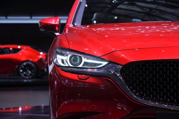 Már csak azért sem lehetett könnyű a formatervezőknek, mert a 6-os egy jól működő dizájn, ha hozzányúlnak, meg kell találni azt a határt, azt az egyensúlyt, amivel már észrevehető lesz a módosítás, de nem rontanak az összképen. A japán márkánál óvatosak is voltak: szemből egész picit változtattak a maszk formáján, és átalakították a mintázatát, igazítottak a krómdekoron, valamint a fényszóró belső szerkezetén. A szedán hátsó lökhárítójának alsó részén nagyobb lett a karosszéria színére fényezett felület, a kipufogókat szélebbre helyezték, és a végcsövek átmérőjét is megváltoztatták.