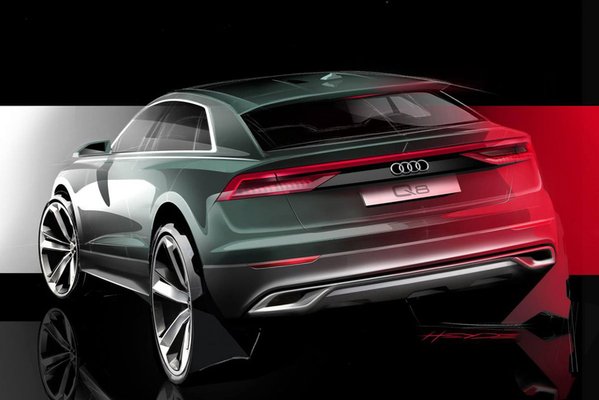 Egyelőre csak egy hátulnézeti vázlatot mutattak az autóról, de ebből is egyértelmű, hogy miről van szó. Egy ötajtós karosszériáról, erősen döntött hátsó ablakkal, amely egyértelműen kevésbé tohonya jelenség, mint a Q7-es, viszont a kupék könnyedségét így is teljesen nélkülözi.