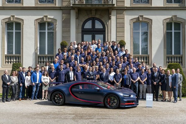 A 100 eladott példány abból a szempontból is mérföldkő, hogy korábban a Veyronnál valamivel több mint két év kellett, míg átlépték ezt a határt, a Chironnál viszont elég volt erre a 24 hónap. A matt sötétkék alapszínű, piros csíkkal díszített 100. példányt egy közel-keleti megrendelőnek készítették.