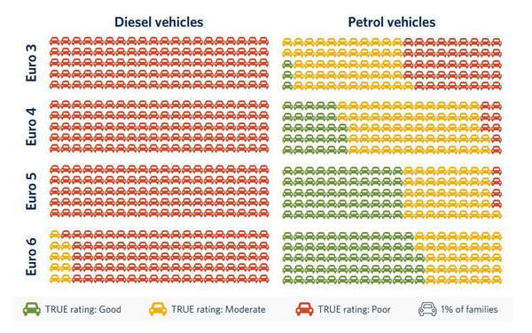Az eddig is sejthető volt – az ICCT statisztikája csak megerősíti ezt – hogy a régebbi dízelmotoros autók nitrogén-oxid-kibocsátás tekintetében csak a kötelező normát teljesítik a kötelező mérési ciklusban, de a valóságban a határérték többszörösét ereszthetik a levegőbe. Erre egyrészt korábban maga a Euro6 norma is lehetőséget adott, például a motor élettartamának drasztikus csökkenését elkerülendő, másrészt a szabvány mérési ciklus sem tükrözte a valós viszonyokat.