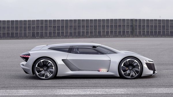 Az elektromos sportkocsival korábban randán befürdött az Audi: az R8 e-Tron szériaváltozata amellett, hogy túl drága volt, lassabbnak bizonyult a Tesla Model S-nél, így száznál is kevesebbet készítettek belőle 2015 és 2016 között. Talán ezért nem alkalmazták most ezt a receptet, inkább egy célszerűbb, shooting brake fazonú háromajtóst készítettek az elektromos hajtáslánc köré, amely a benzines Audikra nem is igazán emlékeztet. Az alacsony és rövid, de feltűnően széles autóban így 470 literes csomagteret is ki tudtak alakítani, részint azt kihasználva, hogy maga az elektromos hajtásrendszer alig foglal helyet. Pedig három motorból áll: az első kerekeket egy 204 lóerős, a két hátsót két 306 lóerős villanymotor hajtja. Az egyszerre elérhető összteljesítmény valamivel kevesebb, mint a motorok teljesítményének összege, de kevésnek biztosan nem találja majd senki. Általában 680 lóerő hozható ki a rendszerből, de rövid időre akár 775 lóerő is hajthatja a gépet, ami 2 másodperces gyorsulási időt jelent 100 km/h-ra.