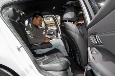 A BMW 3-as sorozata az E90/91-es széria óta kezd rendes méretű lenni, de a Párizsban kiállított autó belül is már kifejezetten nagynak tűnik, tehát a tengelytáv centijei nem vesztek el. Beültem pár délceg germán mögé hátra, és volt hely, több mint elég, ráadásul az ülés kényelmes és jó helyzetű – itt már nem kell azzal trükközni, hogy az utast fura helyzetbe kényszerítsék. A csomagtartó is szép nagy, de óvatosan megtartották a 480 literes térfogatot, nehogy az Excel-táblák alapján választóknál előnybe kerüljön az 5-öshöz képest. Mondjuk egy szedánnál, ahol amúgy sem a mosógépszállítás a fő profil, nem hinném, hogy ezen bármi is múlna.