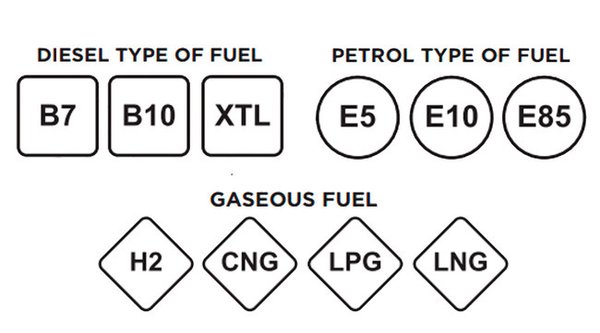 Az új, szabványos jelzésrendszer elég markánsan elkülöníti a három leggyakoribb üzemanyagtípust. A benzinfajtákat körbe írt kóddal jelöli, amely E-vel kezdődik, és az etilalkohol-tartalom százalékos arányával folytatódik. Azaz az E5 5%-nyi alkohol-tartalmú benzin, az E85 viszont 85%-ban alkoholból álló üzemanyag. A szabvány már eddig is előírta a benzin keverését alkohollal - ami egyébként régebbi motorok esetén akár meghibásodáshoz is vezethet - de mostantól ennek a mértékéről is pontos tájékoztatást kapunk a kútoszlopnál.