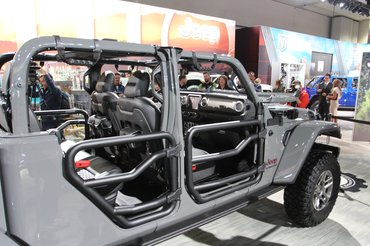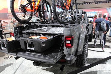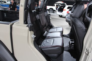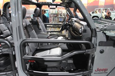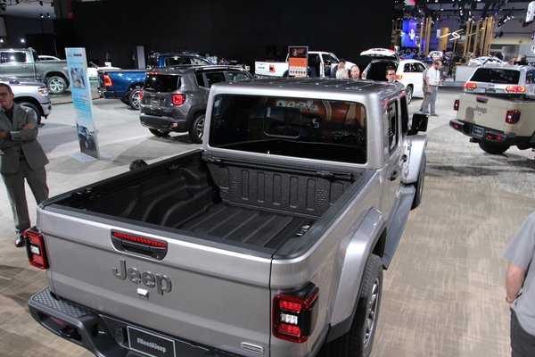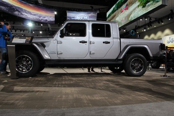 Az alap Gladiator csak Európából nézve meredek húzás, itt, a Los Angeles-i szalonon, ahol balra a RAM, jobbra a Dodge a szomszéd, a Jeep standja csak egy tucat nagy pickupokkal teleszórt sarok. A forma ismerős, mert hát ez egy négyajtós Wrangler, aminek nekitoldottak egy platót. Ennyire persze nem volt egyszerű a munka, az orrnyílásokat is meg kellett nyújtani, hogy a nagyobb és nehezebb test cipelését bírja hűtéssel. Egész pontosan 78,7 centivel lett hosszabb az alváz, ebből 49,3 ment a tengelytávba. Ezzel nemhogy újra lett egy pickupja a Jeepnek, az rögtön az öt és fél méternél hosszabb platósok mezőnyében játszik.