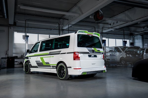 Az Abt nem kezdő, ami a látványos tuningot illeti, és ezt itt nagyszerűen demonstrálták is. A 20 hüvelykes felni, a kötényezés, a hátsó tetőspoiler és a látványos, zöld-szürke matricázás egészen olyan hatást kelt, mintha egy különösen gyors VW Transportert látnánk, pedig a hajtáslánc nem igazán támogatja a veszedelmesen gyors közlekedést.