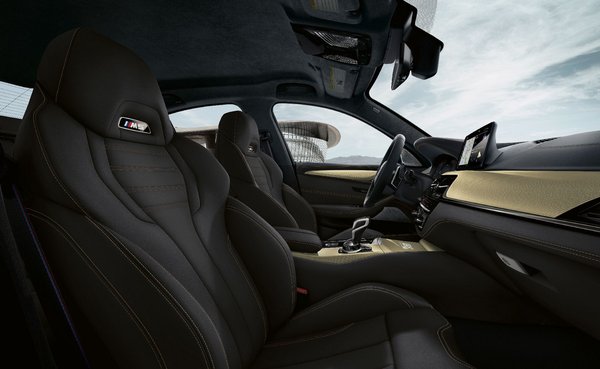 Feltűnőbb dekoráció leginkább belülre jutott: jellegzetes aranysárga karbonszálas betéteket alkalmaznak a műszerfalon, az ajtókon és a középkonzolon. Meg persze ott van az „M5 Edition 35 Jahre” - felirat, amely a küszöbökön és a műszerfalon egyaránt olvasható.