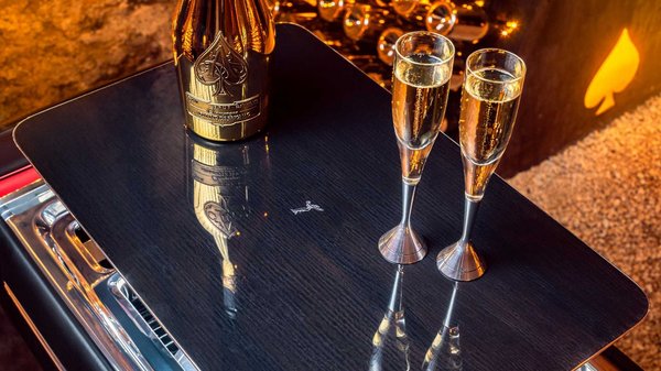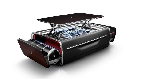 A hivatalos neve Champagne Chest, és egyetlen célja van: tökéletes stílusban feltálalni a pezsgőt és a kaviárt. Nem csak a Rolls-Royce közelében, de azért oda illik igazán, már csak a dekorációja miatt is.