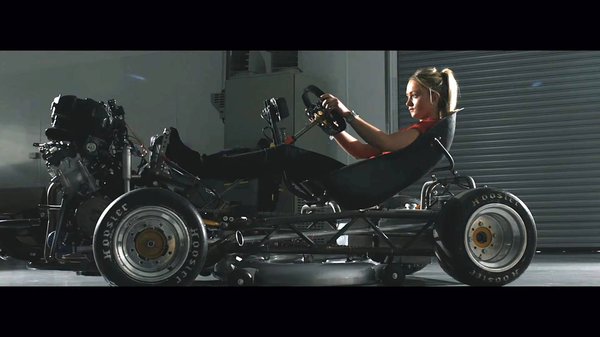 A rekordot a németországi Lausitzringen állította fel Jessica Hawkins brit versenyzőnő és kaszkadőr, aki erősen versenyautós, szinte fekvő pózban ül az érdemi rugózással nem rendelkező gépen. A videón látszik is, hogy mindössze a gumi és a váz deformációja ad némi rugózást, de nem sokat: pattog a gép.